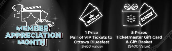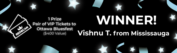 - A Pair of VIP Tickets to the Ottawa Bluesfest – estimated value $400 CAN
